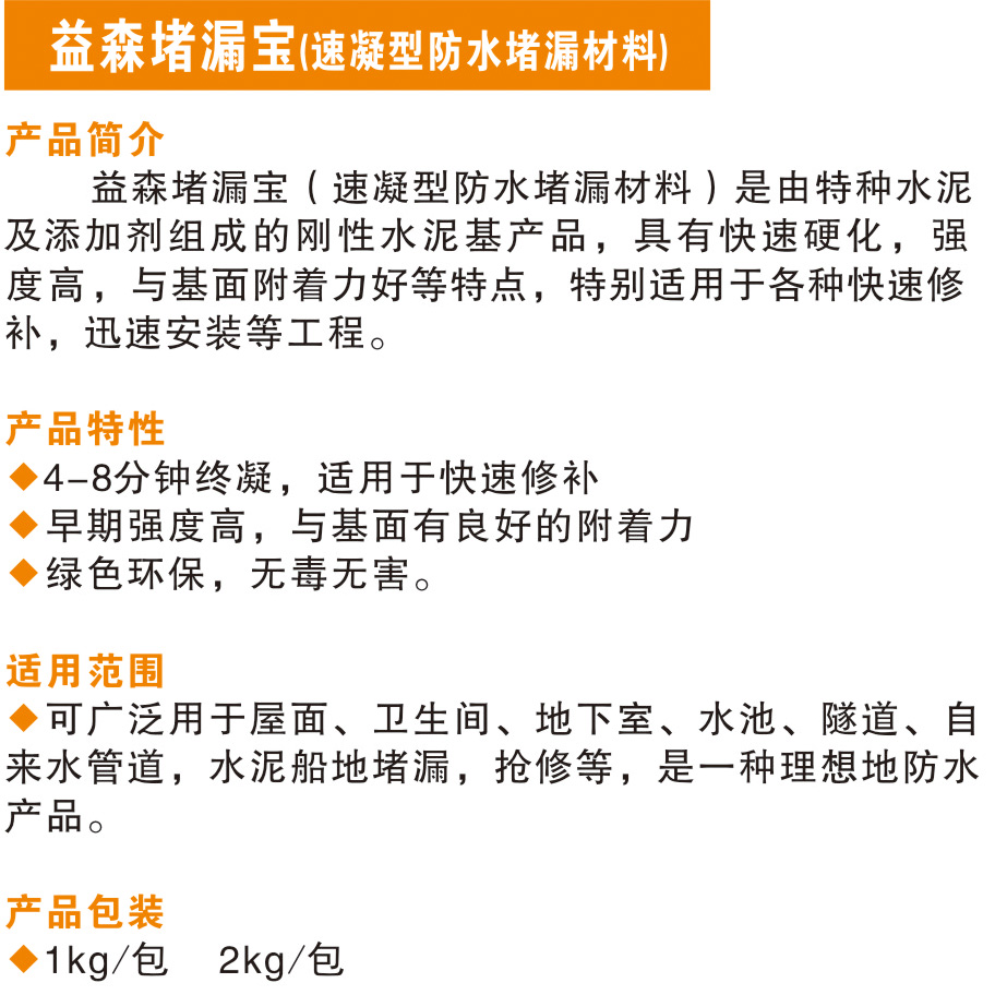 益森堵漏寶(速凝型防水堵漏材料)
